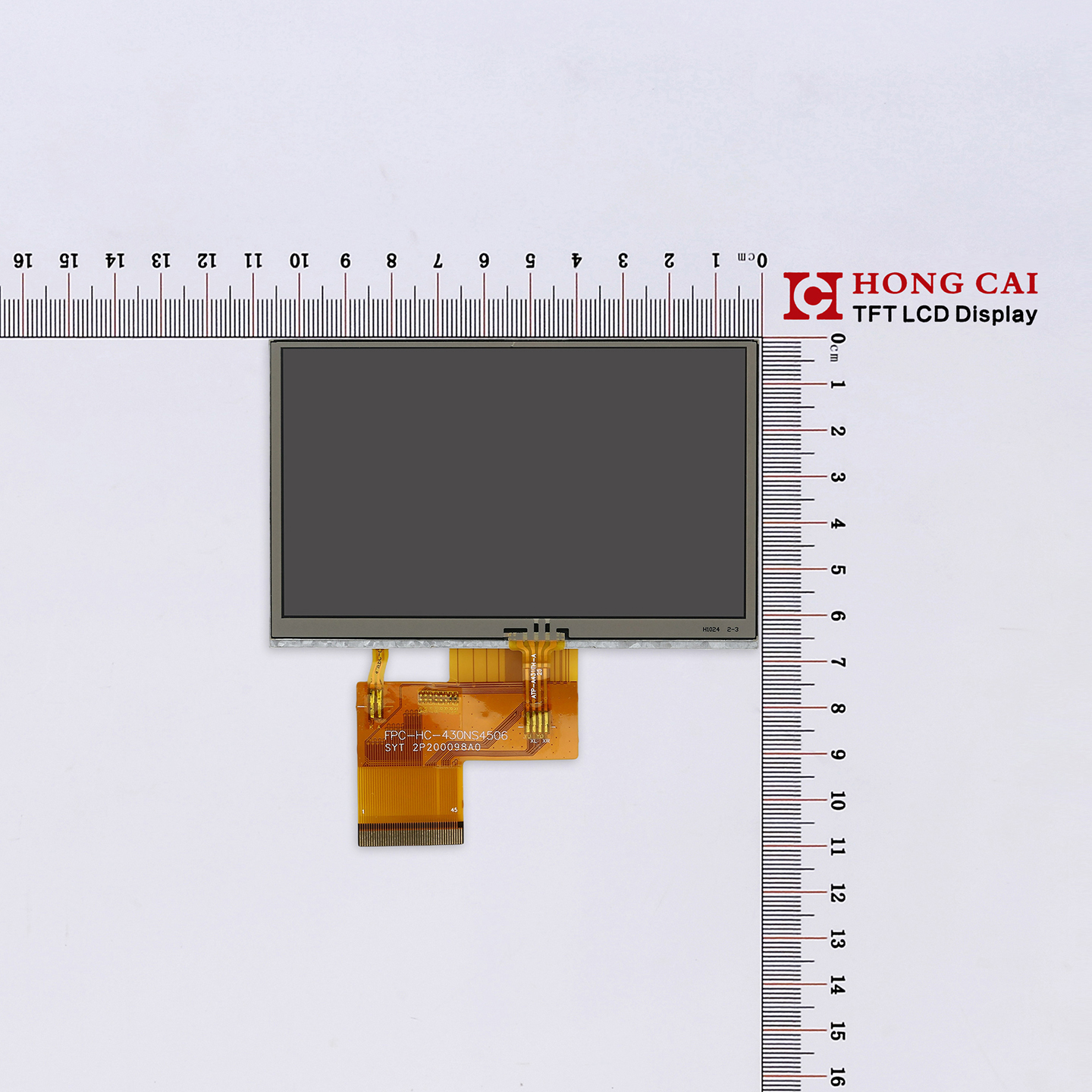 4.3寸LCD显示屏电阻触摸,分辨率 480×272,驱动芯片可自行选择,ST7282,NV3047,ILI6485D,支持3线/4线SPI及8/16位MCU 8080接口,TFT面板,可选BOE,INNOLUX,HSD,显示效果清晰细腻。此4.3寸为标准型号,视角和触摸屏,均可自由组合。有普通视角和全视角IPS显示模式,可配备电容触摸屏(CTP)和电阻触摸屏(RTP)。泓彩工厂各种组合对应的型号。